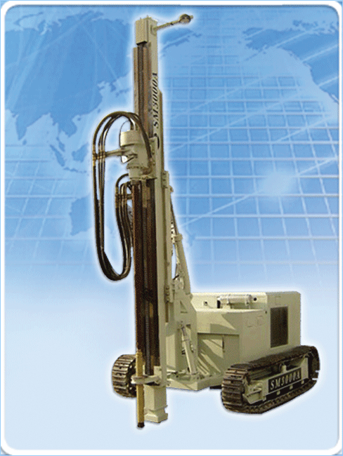 钻机采用内燃机(或电动机)液压油泵动力组供给钻机行走、回转、推进及提升、油缸摆角定位等,除潜孔冲击器之外的所有动力;钻机钻孔作业时只有潜孔冲击器消耗压缩空气。该钻机采用潜孔冲击对心扩孔或偏心扩孔外套管跟进护壁成孔工艺钻凿水电围堰注浆孔、提坝防渗注浆也、基础回固注浆孔及锚孔等;该钻机也可用于水井、地温空调钻孔作业及各类石方工程爆破孔作业。